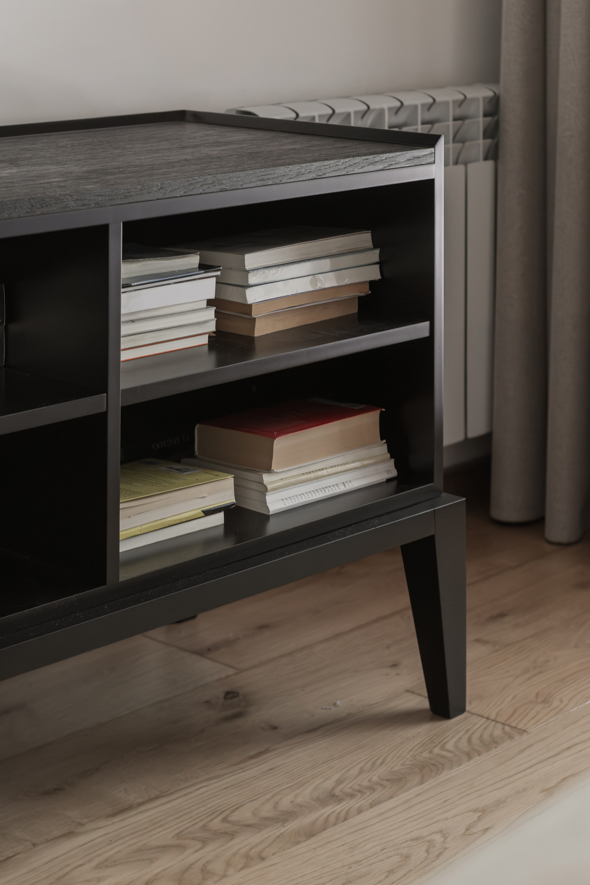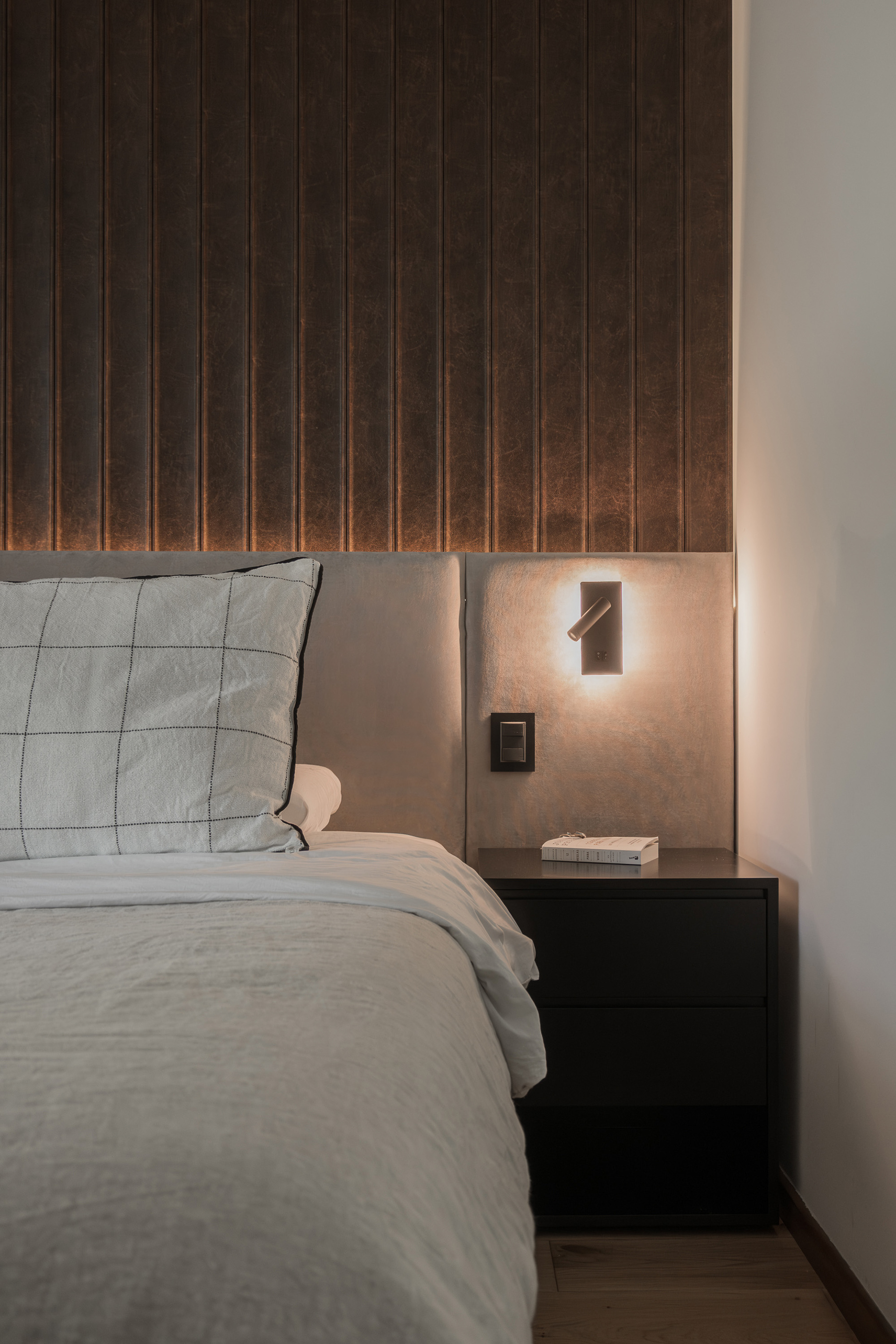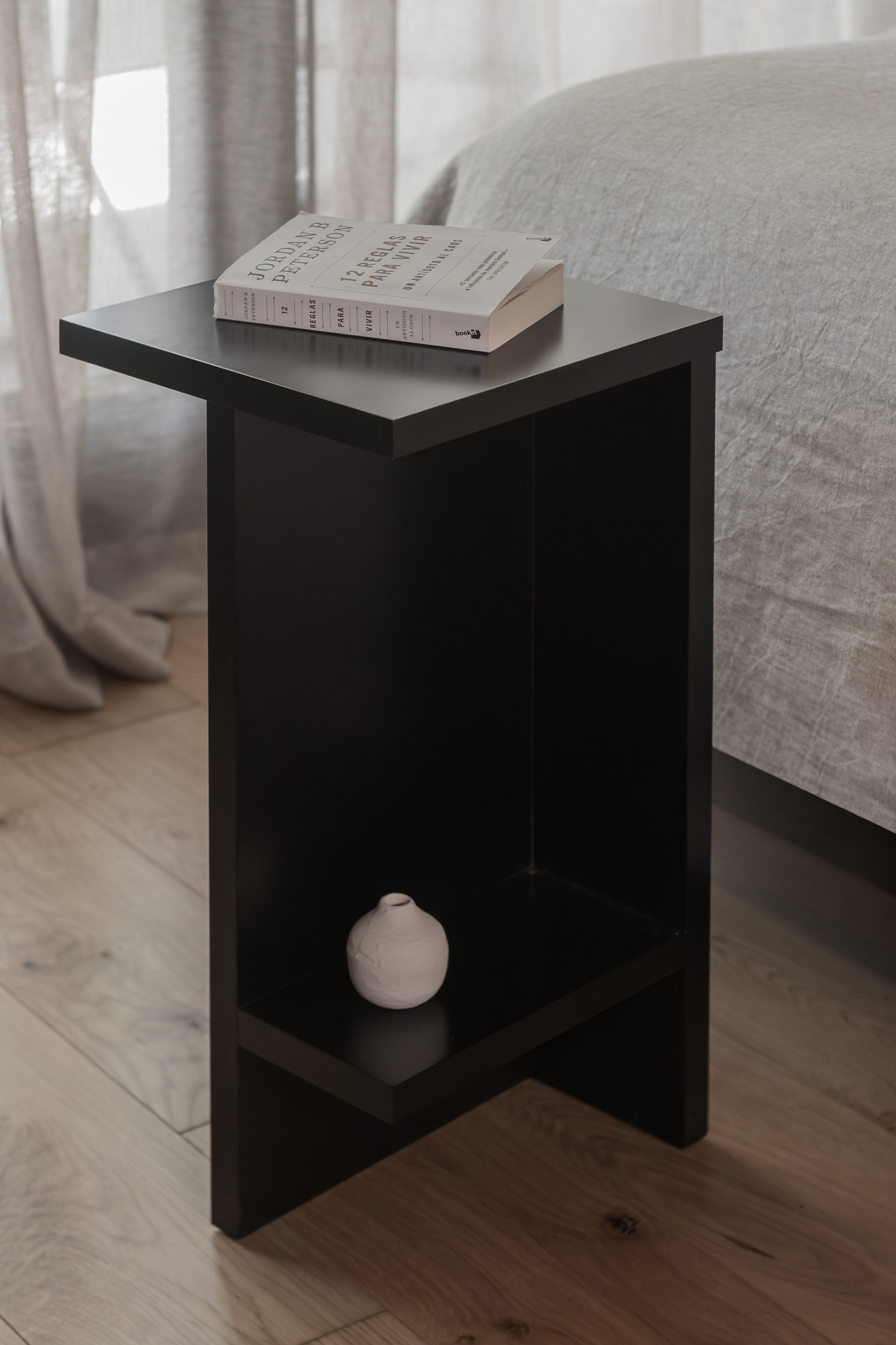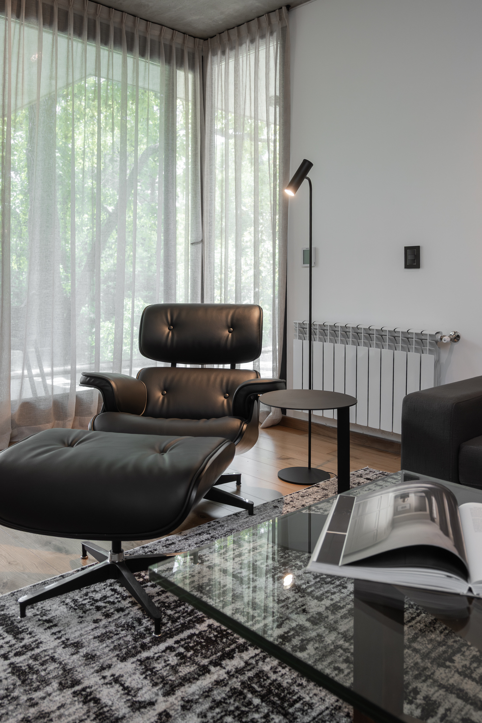Para el rincón de lectura elegimos el butacón Eames Miller, una pieza cómoda y envolvente que aporta diseño, elegancia y modernidad. Lo acompaña una lámpara de pie de líneas limpias, que suma calidez y acento visual sin restar protagonismo.