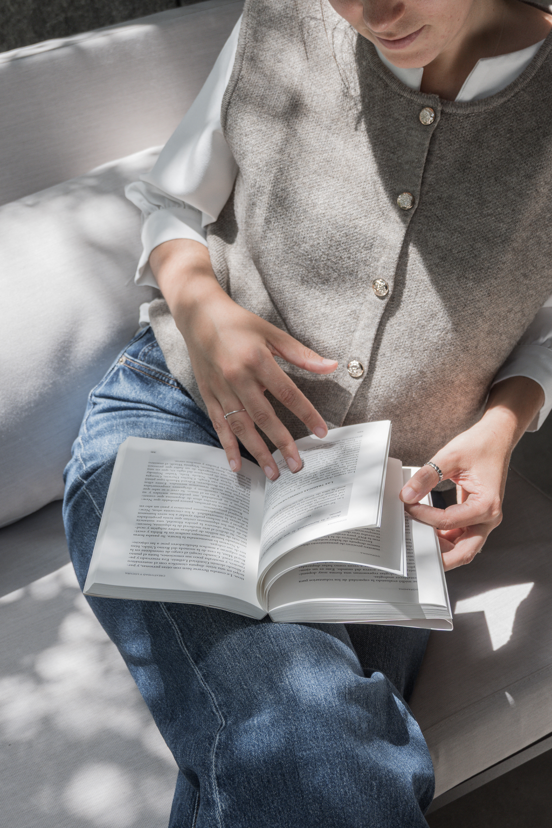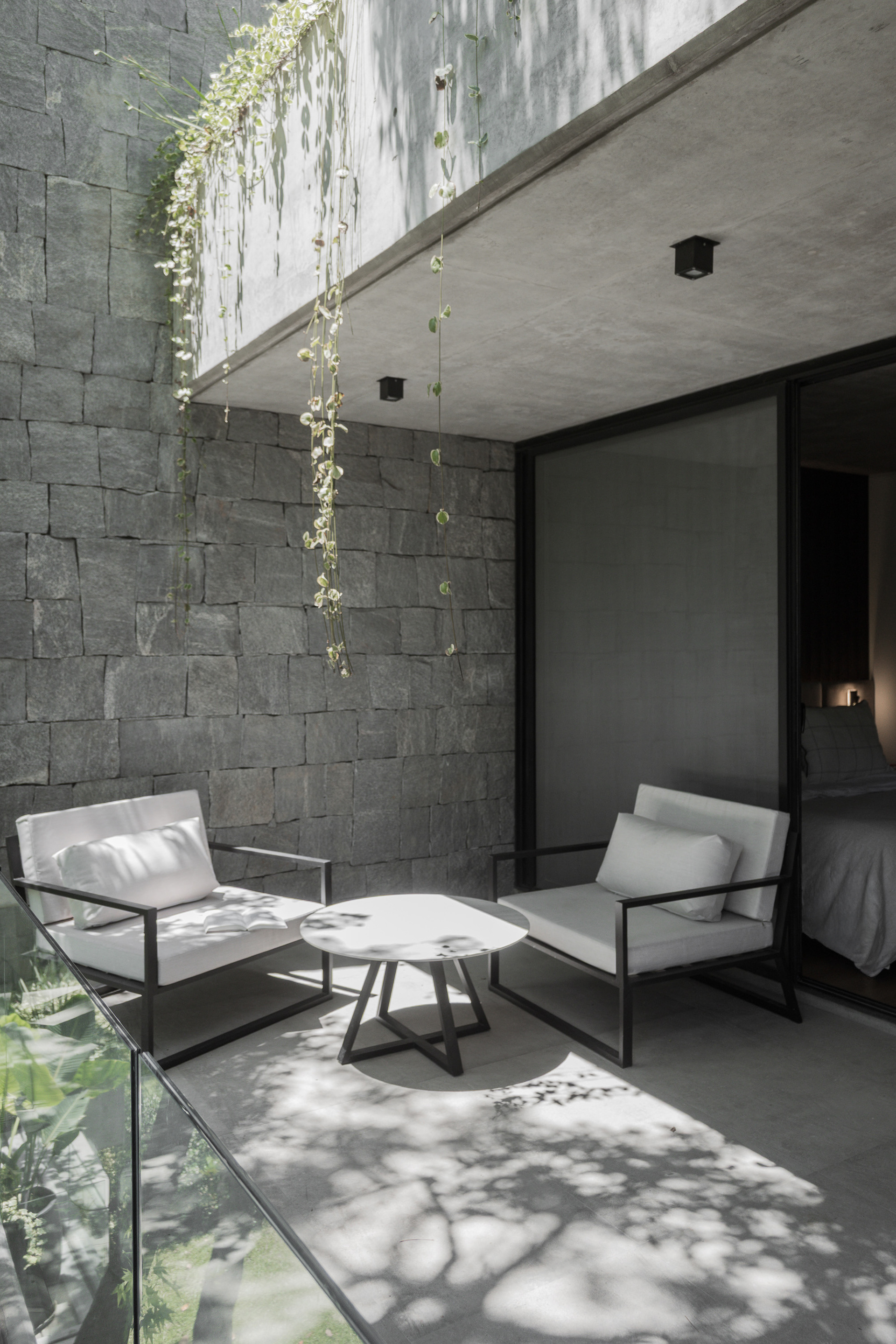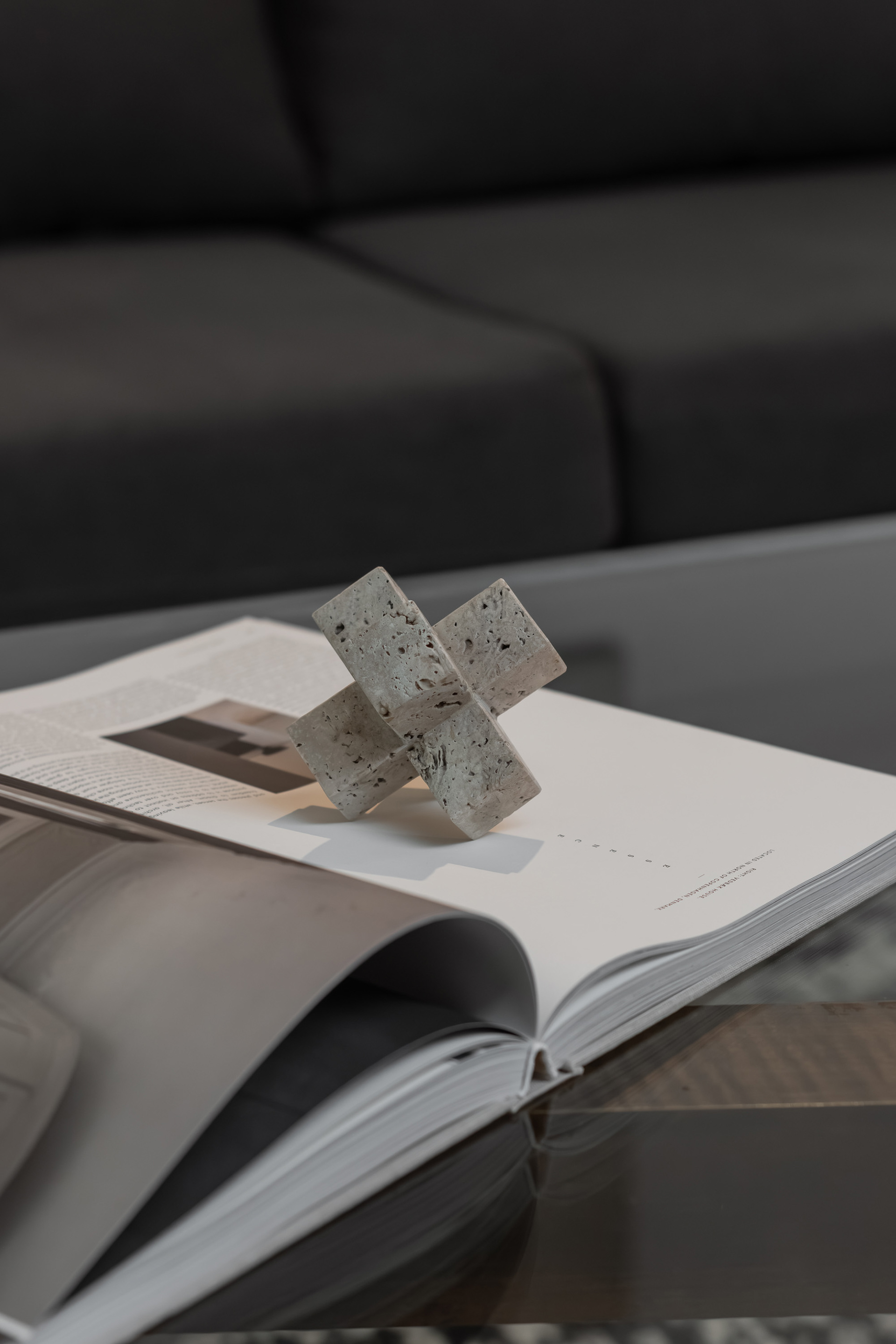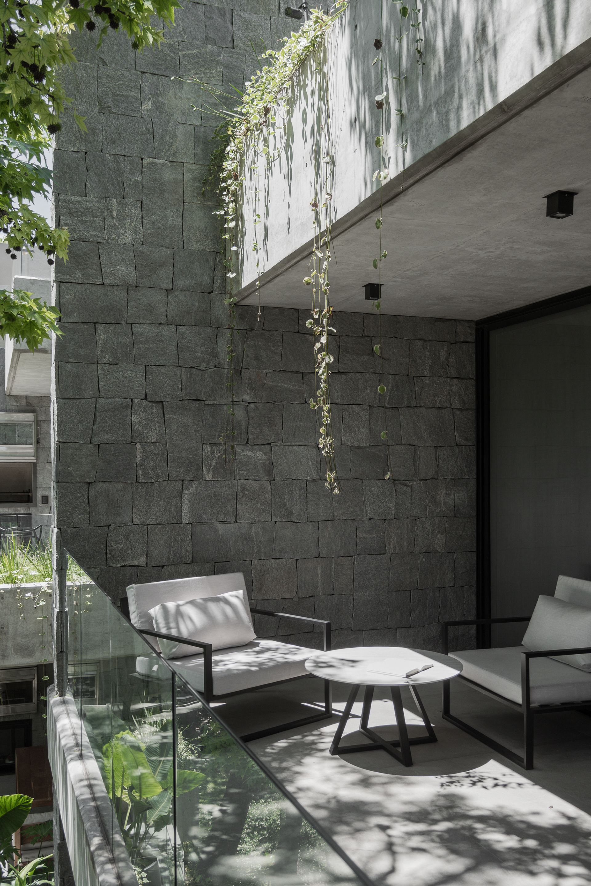Para este balcón seleccionamos un juego de living con tapizado en tela náutica, resistente al exterior, acompañado por una mesa de Dekton con acabado marmóreo en tonos neutros. La calidez de la luz solar y el juego de sombras terminan de coronar este espacio, aportando una atmósfera serena y acogedora.