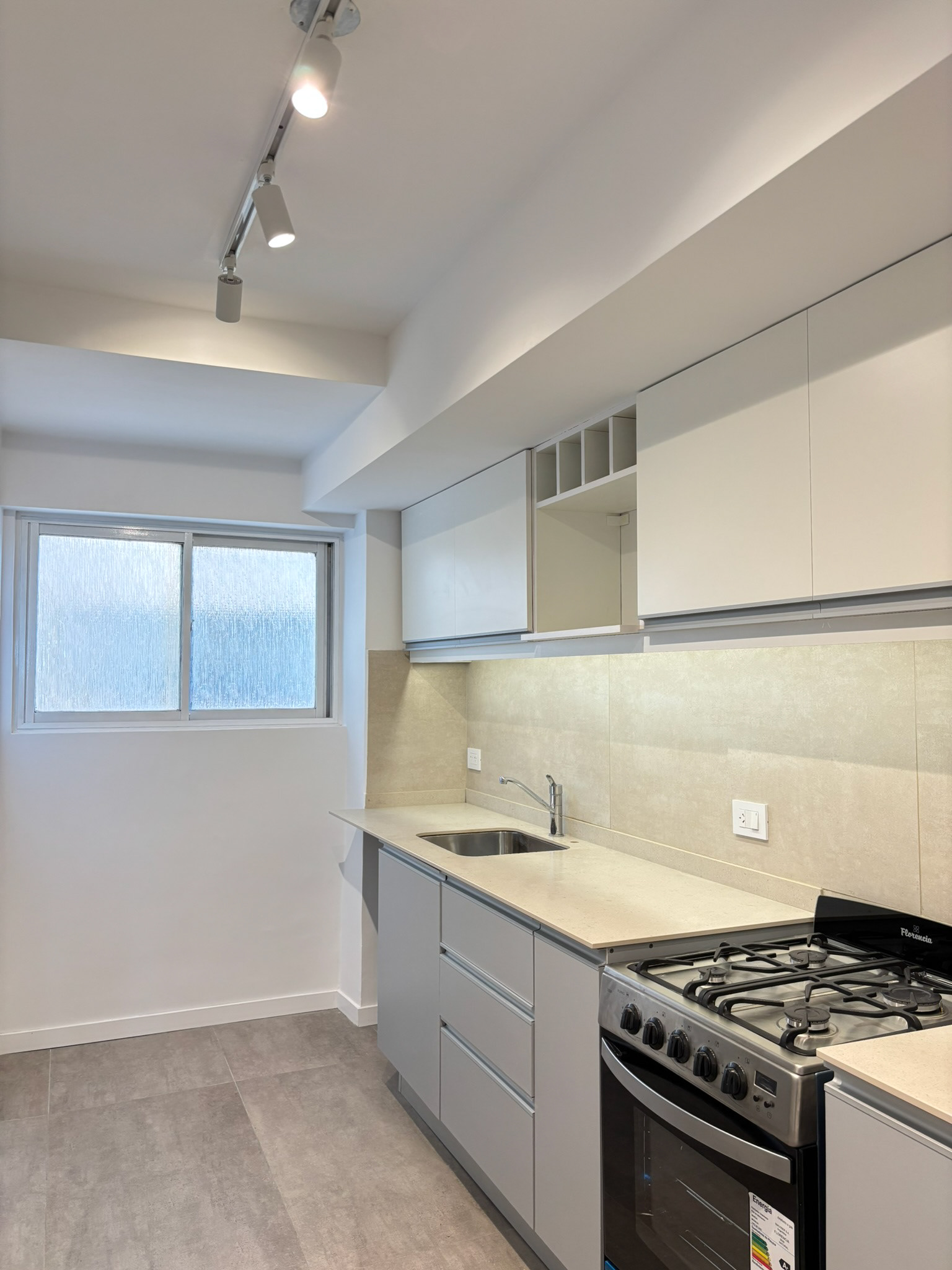 Reforma de un departamento completamente transformado para adaptarse a las necesidades y gustos modernos de nuestros clientes. Uno de los cambios más importantes es la ampliación de la cocina, unificando el espacio con el lavadero, lo que permitió crear una zona más amplia, luminosa y funcional. Además, se renovaron los revestimientos y los muebles de cocina, incorporando materiales contemporáneos y soluciones inteligentes que optimicen tanto el diseño como la eficiencia del espacio.